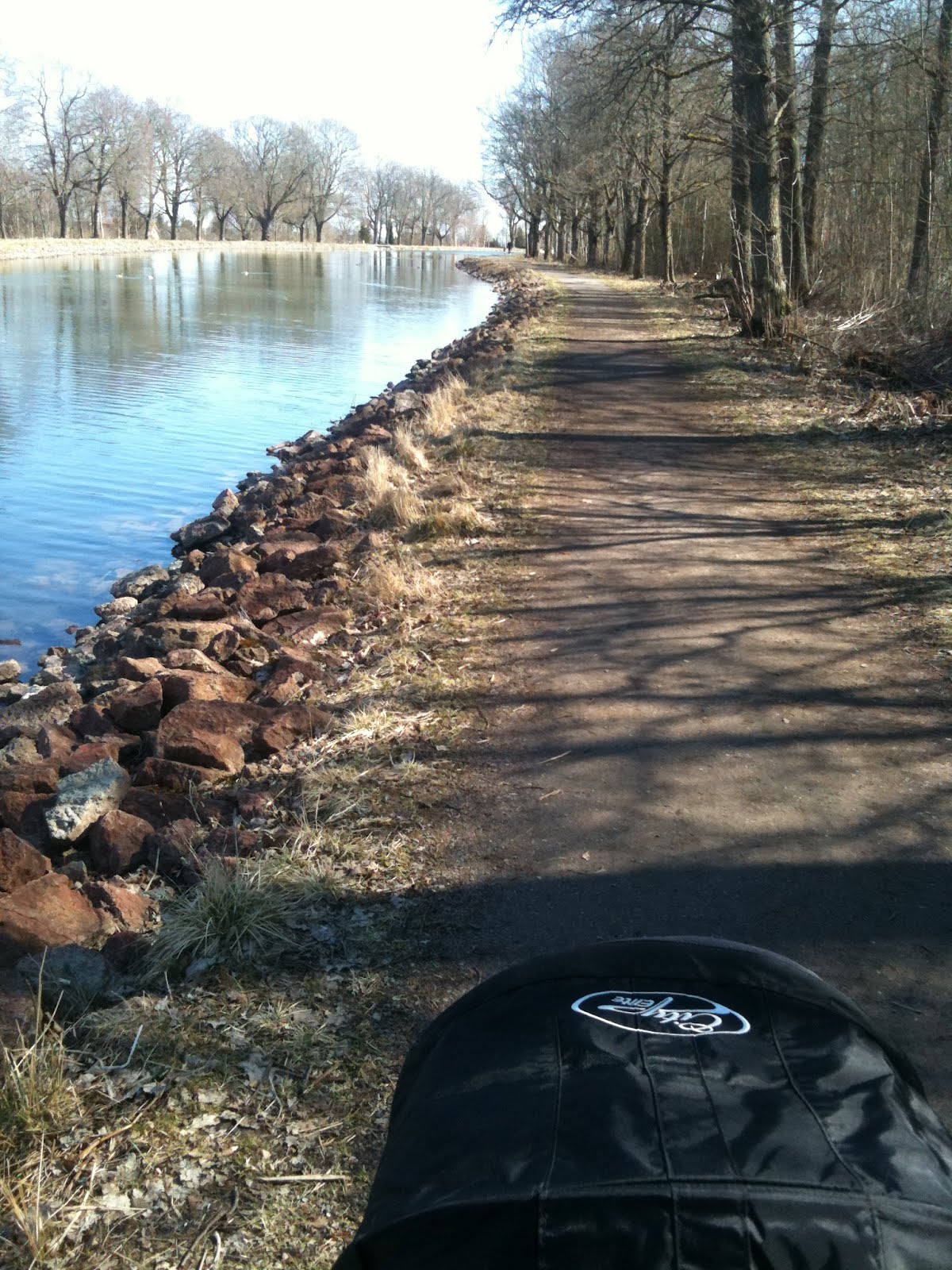 Nån kilometer senare kunde jag lämna vägen och fortsätta uppe på kanalbanken istället, mycket skönare! Började märka av att jag totalt hade felbedömt temperaturen. Jag svettades floder och kände mig lika varm som en högsommardag. När jag tittade ut imorse var det frost på vår gräsmatta, men den måste ha försvunnit fort för det kändes som det var typ femton grader varmt, minst. Alldeles för varmt med kompressionsstrumpor, långa tights och jacka med andra ord! Är det inte av regn man blir blöt så är det av svett!